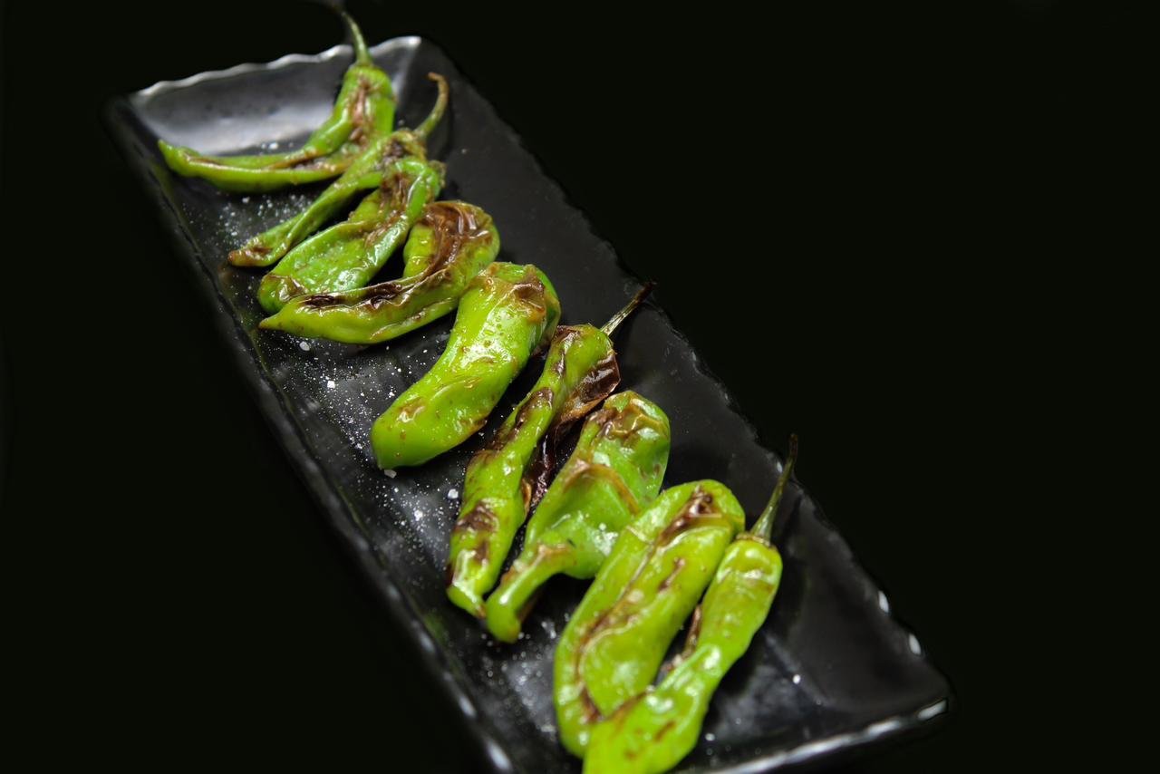Pimientos japoneses salteados al wok con nuestra salsa la-yu.